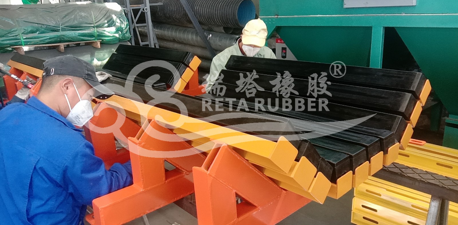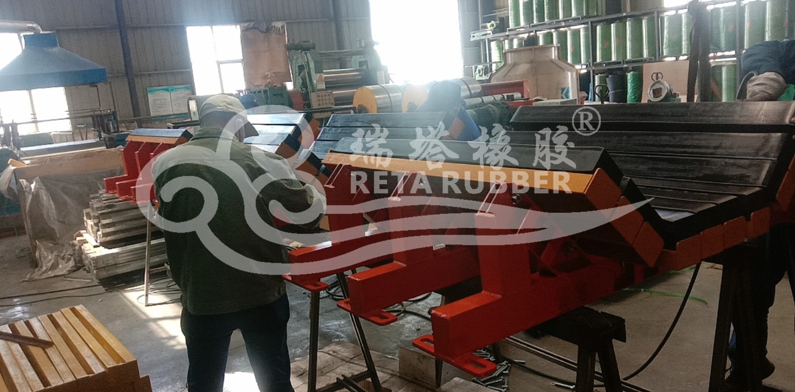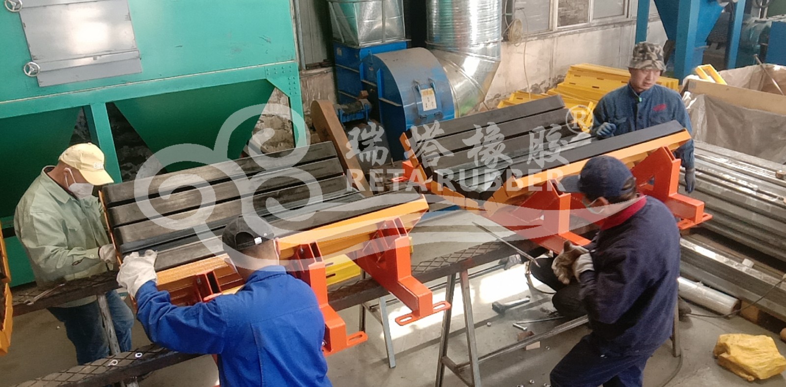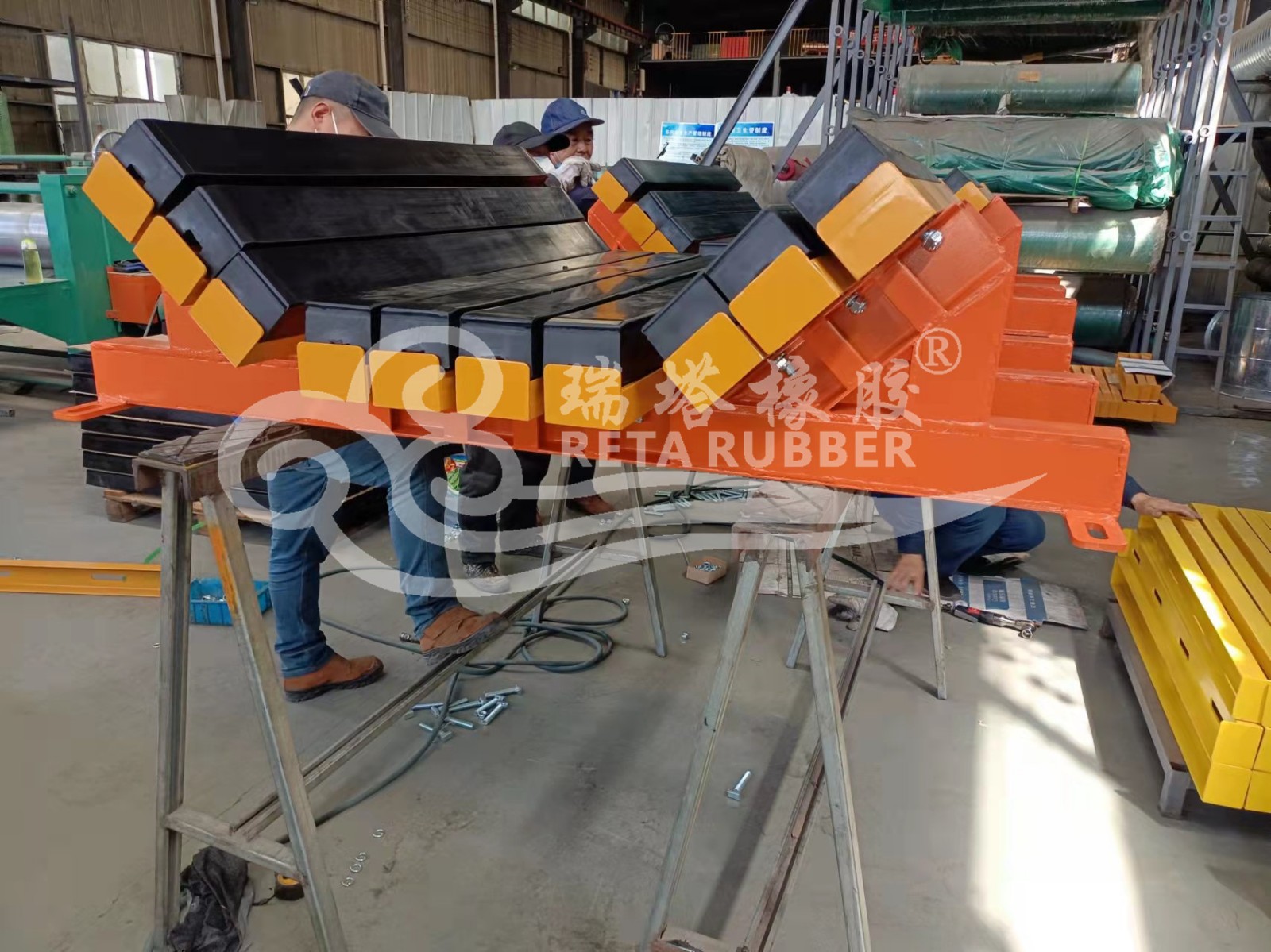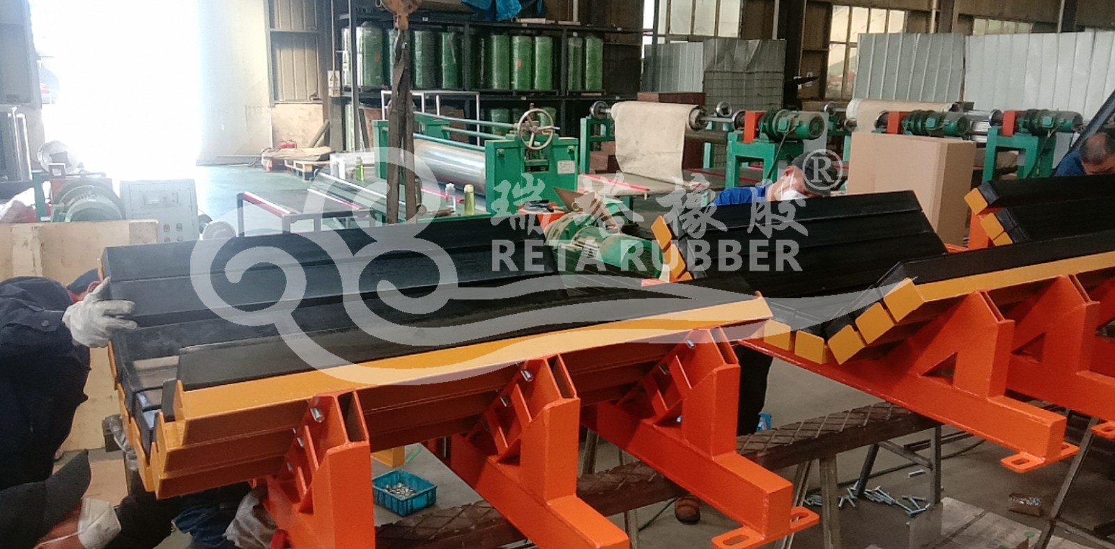 煤礦井下輸送機落料點安標阻燃緩沖床生產完成